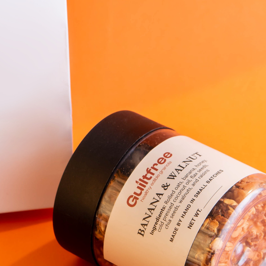 Granola may be everywhere, but at Guiltfree I make it differently. Each jar is packed with the power of seeds – tiny nutritional powerhouses that fuel your body with energy, crunch, and goodness. Handmade in small batches with pure coconut oil and natural honey, my granolas are designed to be both nourishing and satisfying. From classic Seedy Granola to indulgent Banana Walnut, or even your own custom blend, every spoonful is a guilt-free crunch you’ll love.
